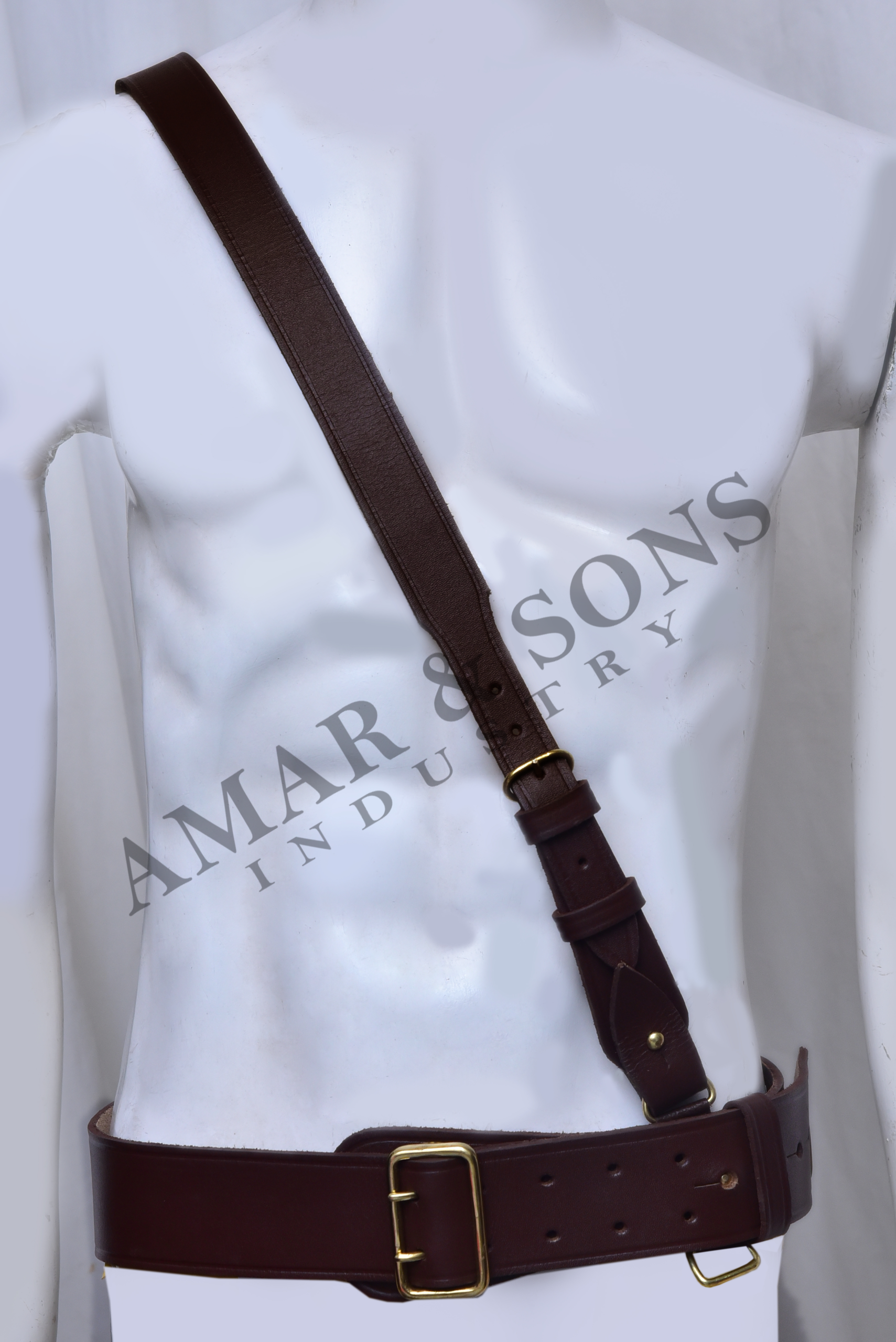 Leather Sam Browne Belt with Shoulder Strap And Brass Metal Fitting