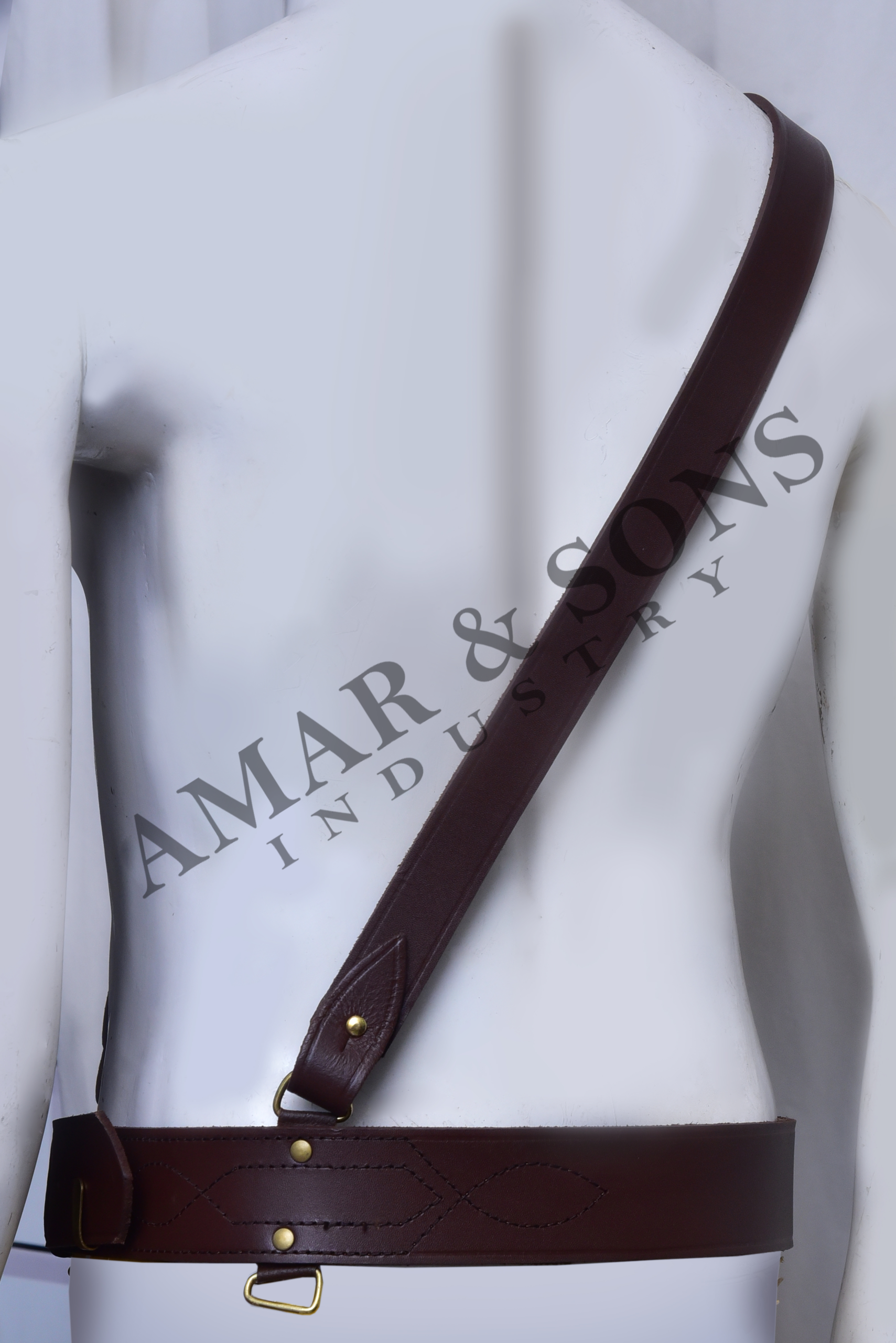 The belt features a matching genuine leather shoulder strap that provides added support and enhances the traditional Sam Browne look. Each belt is carefully stitched with fine decorative stitching patterns, ensuring extra strength and a refined finish. The edges and corners are smoothly edge-grinded for a clean, polished, and long-lasting appearance.
